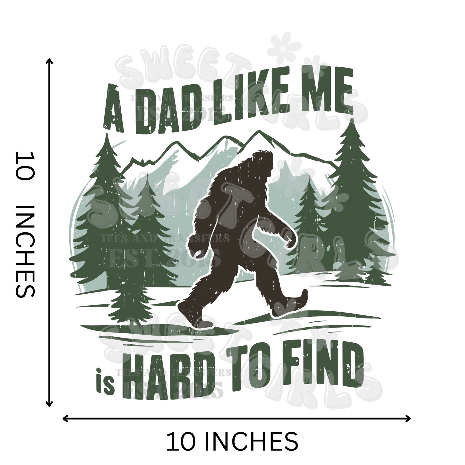A Dad Like Me Is Hard to Find Sasquatch Bigfoot DTF Transfer – Father’s Day Heat Transfer for DIY Shirts, Funny Outdoors Dad Gift, Press-Ready Iron-On Design