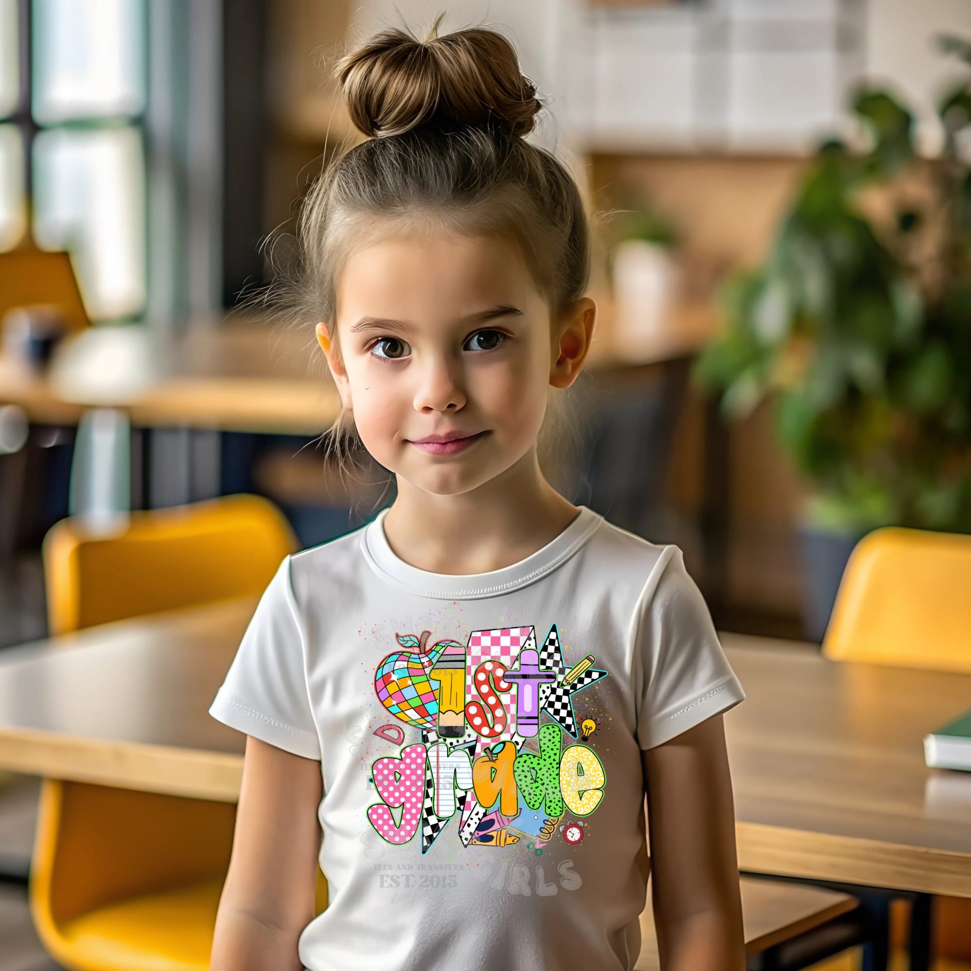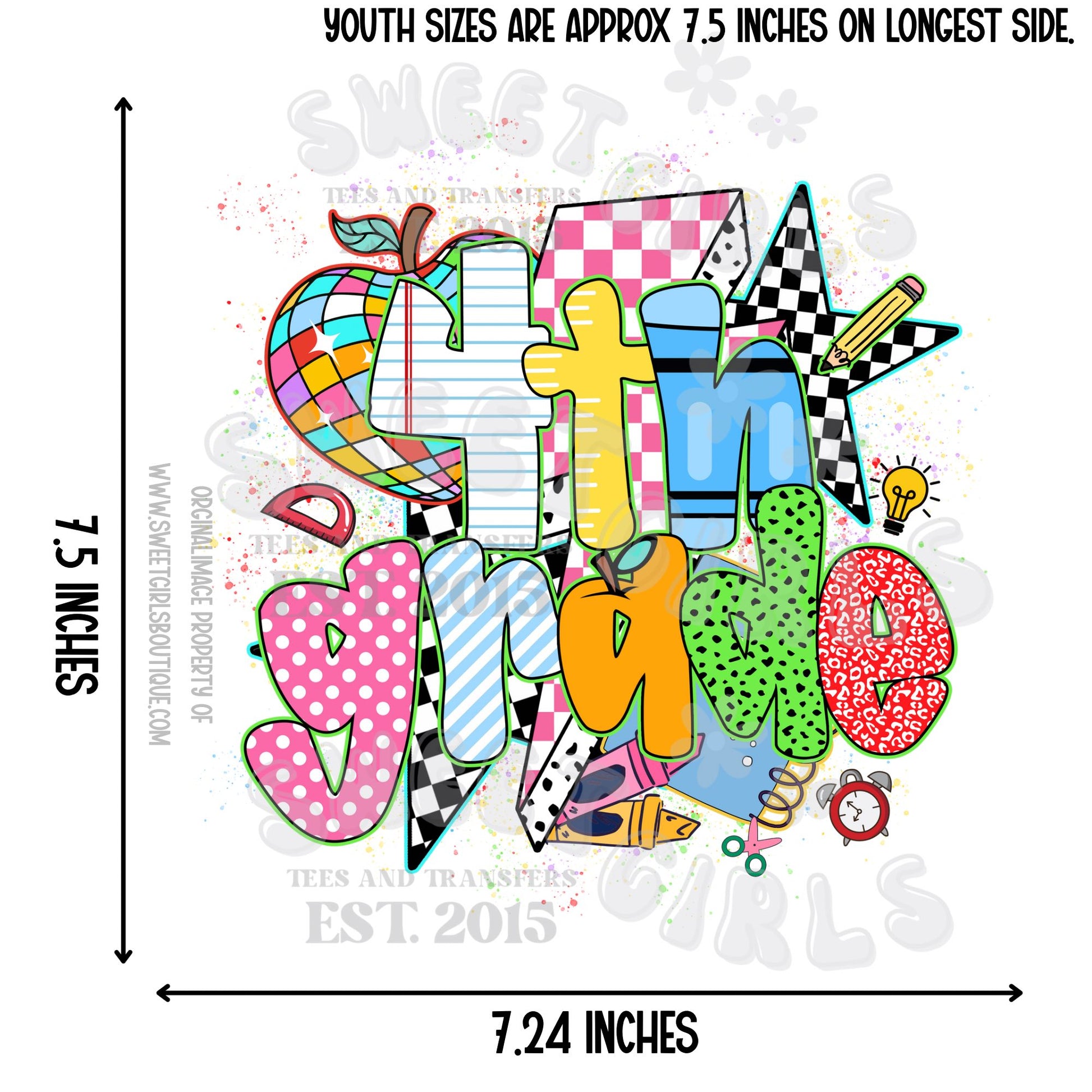 Checkered Apple Star School DTF Transfers – PreK to 4th Grade Iron-On Designs for Kids & Adults – Bright 3D Back to School Heat Transfers for DIY Shirts, Totes & Teacher Gifts