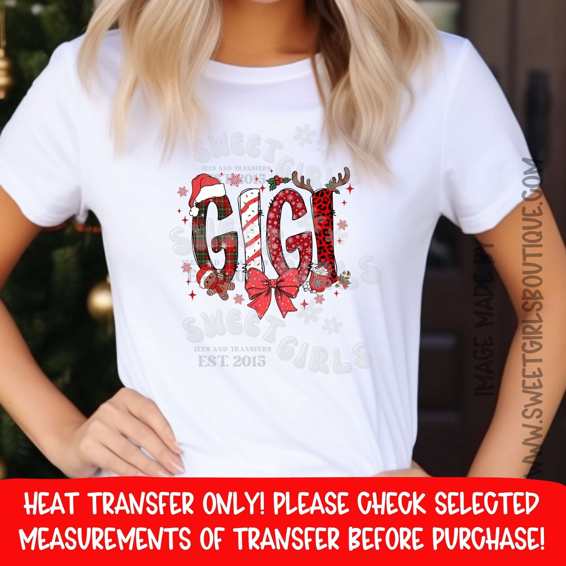 GIGI Christmas DTF Heat Transfer – Ready to Press Holiday Grandma Print – DIY Apparel Transfer (Not a Shirt)