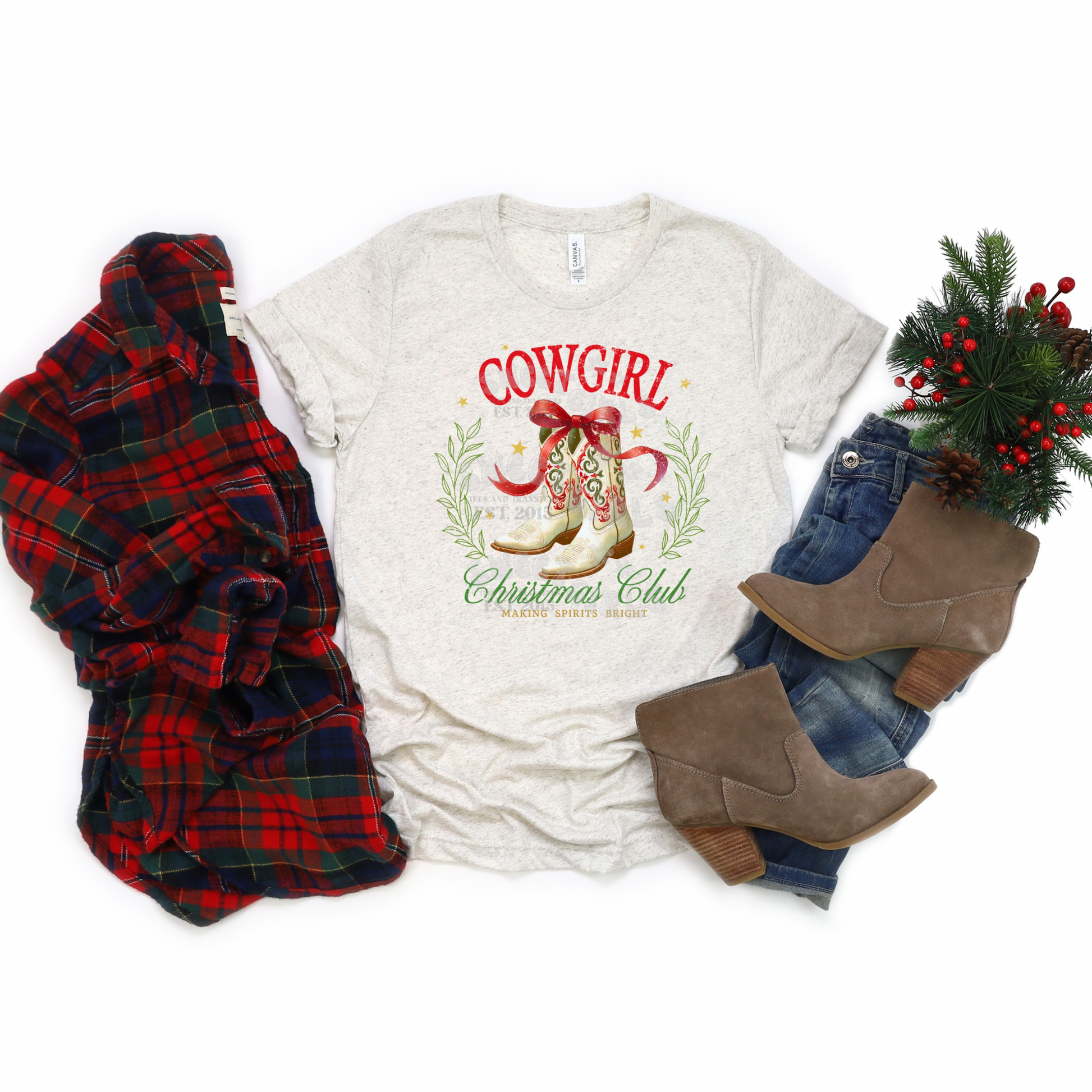 Cowgirl Christmas Club Western Boots Holiday DTF Transfer for Country Girls
