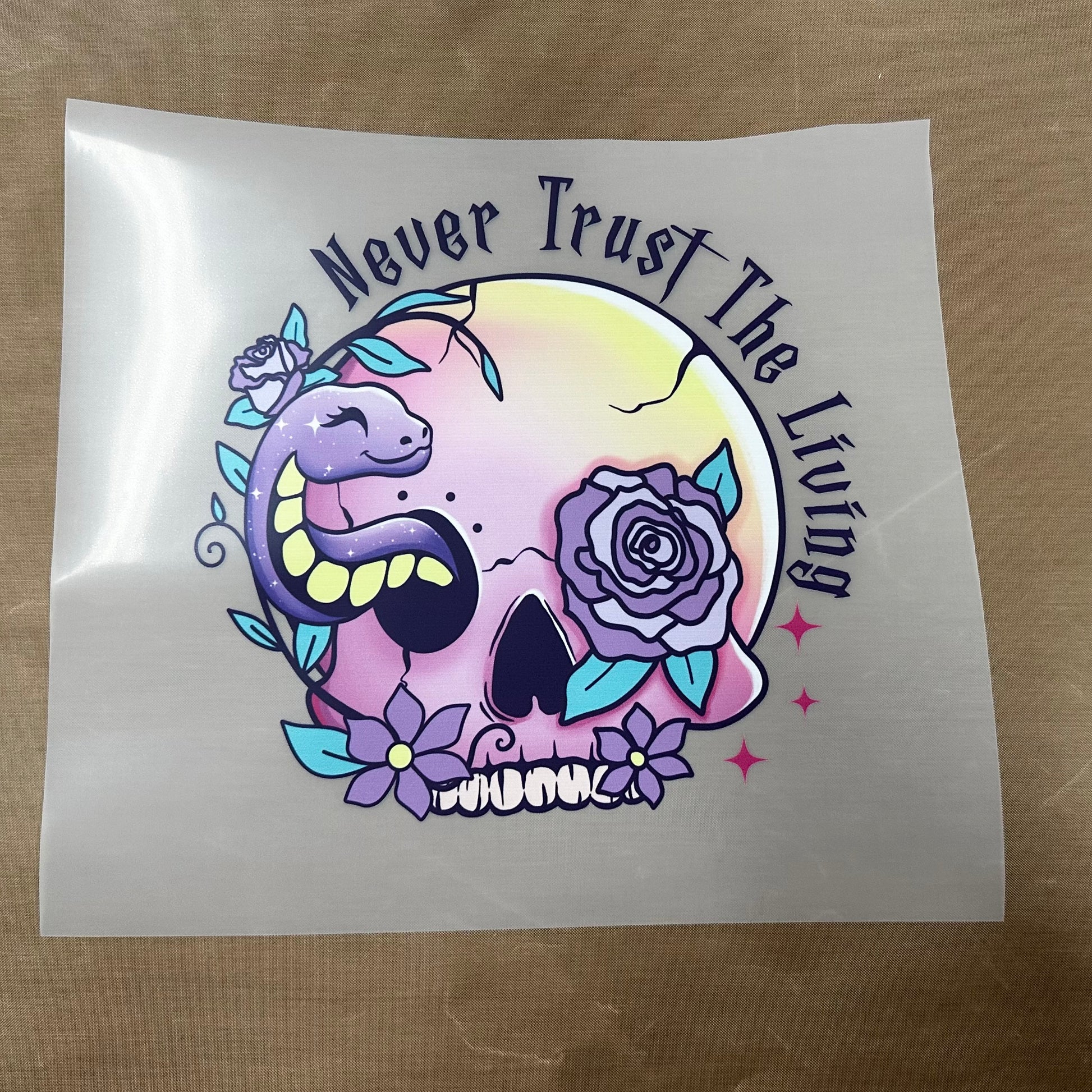 We are not responsible for any pressing errors. Please follow the directions included with every order. DTF Transfer Directions: Cover transfer with butcher paper. At 330 degrees, press for 40 seconds with light pressure. Let the garment cool to room temperature, and then peel transfer. Place the tee back on the heat press, cover again, and press with light pressure for 10 seconds.