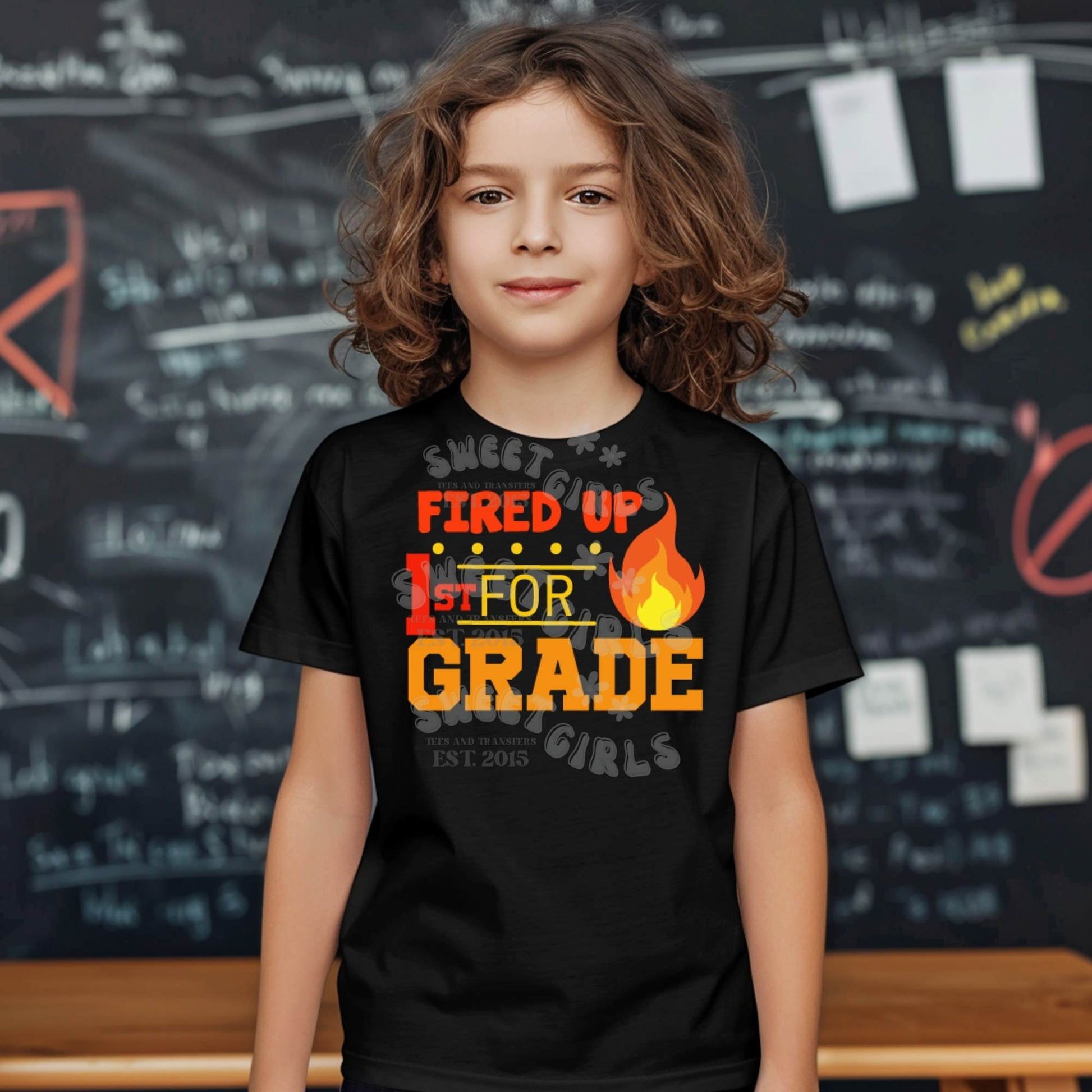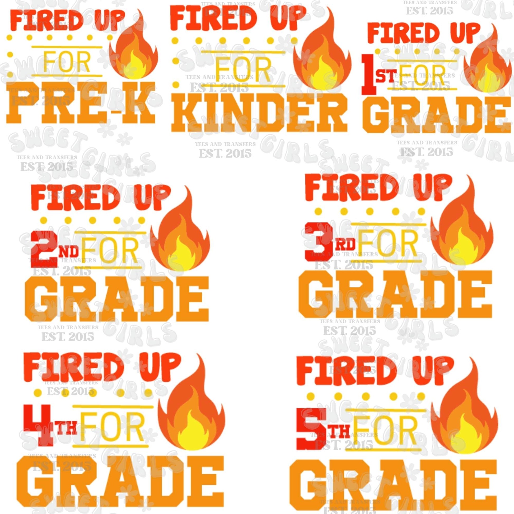 Fired Up for School DTF Transfer – PreK to 5th Grade Flame Back to School Heat Transfer – Fun Flame Design for Students, Teachers, and School Spirit – Ready to Press