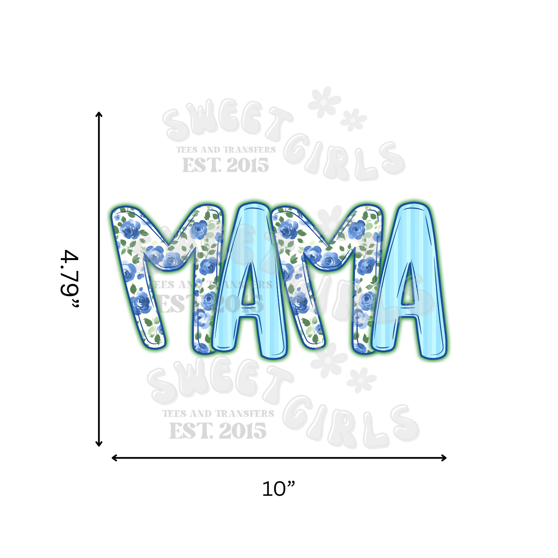 Floral Blue MAMA DTF Transfer – Blue Rose Mama Iron-On for Mother’s Day – Direct to Film Heat Transfer for Shirts, Totes, Hoodies – Washable & Durable Gift