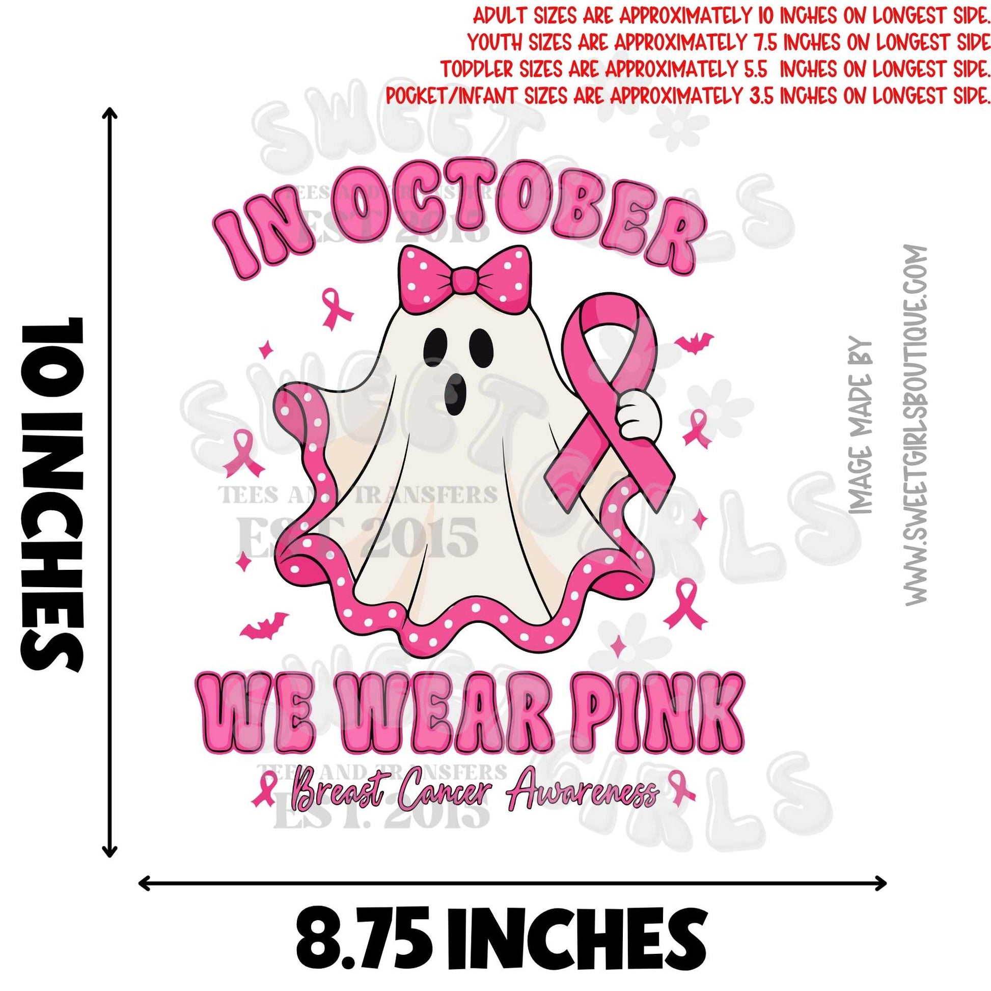 In October We Wear Pink Ghost – Breast Cancer Awareness DTF Heat Transfer