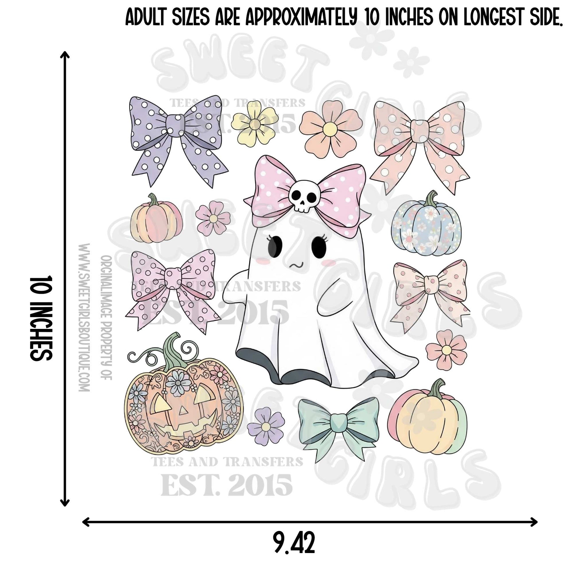 Pastel Halloween Bows Ghost Heat Transfer – Ready to Press DTF Design for Shirts, Totes & Crafts