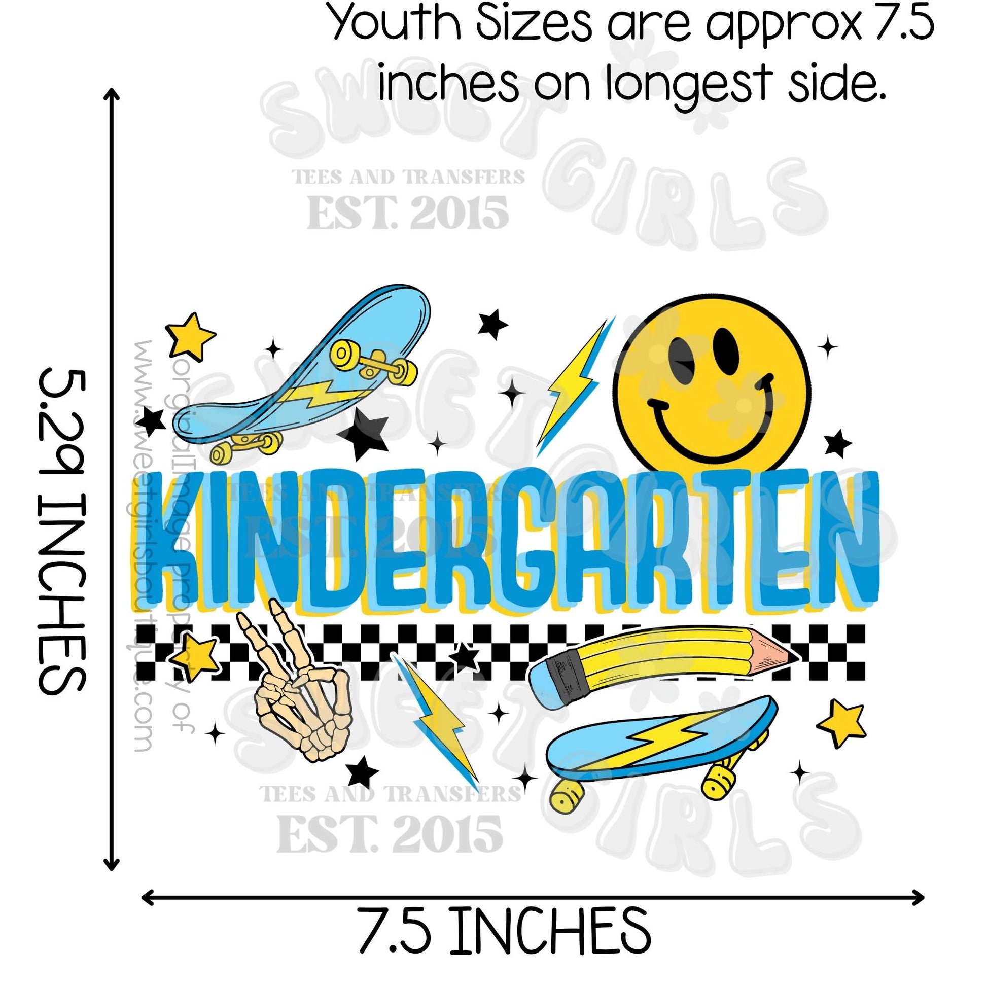 Skater Smiley Grade DTF Transfer – PreK to 5th Grade Back to School Heat Transfer for Kids and Teachers – Lightning, Stars, Smiley Face, Skateboard Design – Ready to Press