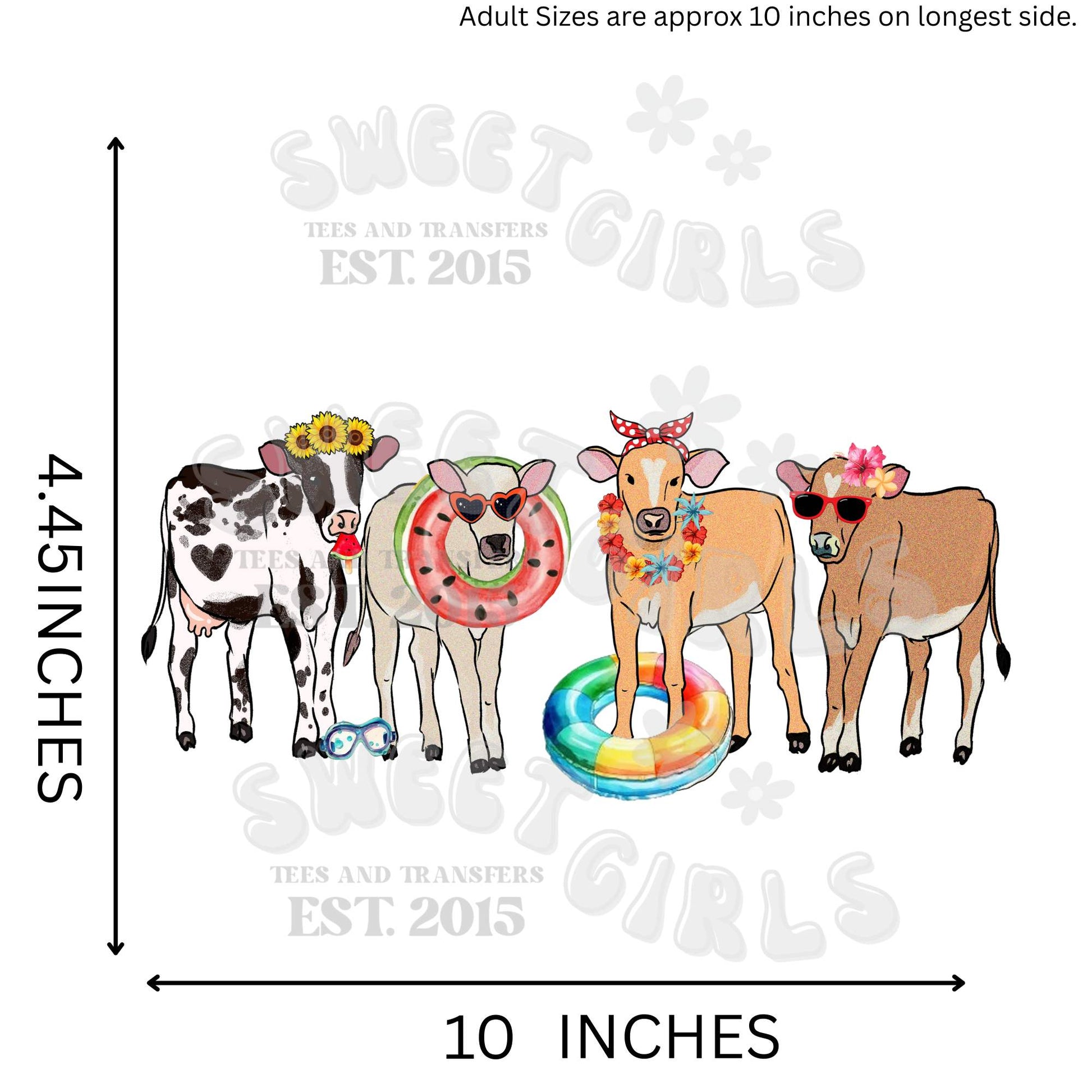 Summer Cows with Floaties and Sunglasses HEAT TRANSFER – Cute DTF Iron-On Design for Farm Girl Tees, Summer Fun Apparel, and Poolside Vibes – Bright, Durable, Cold Peel