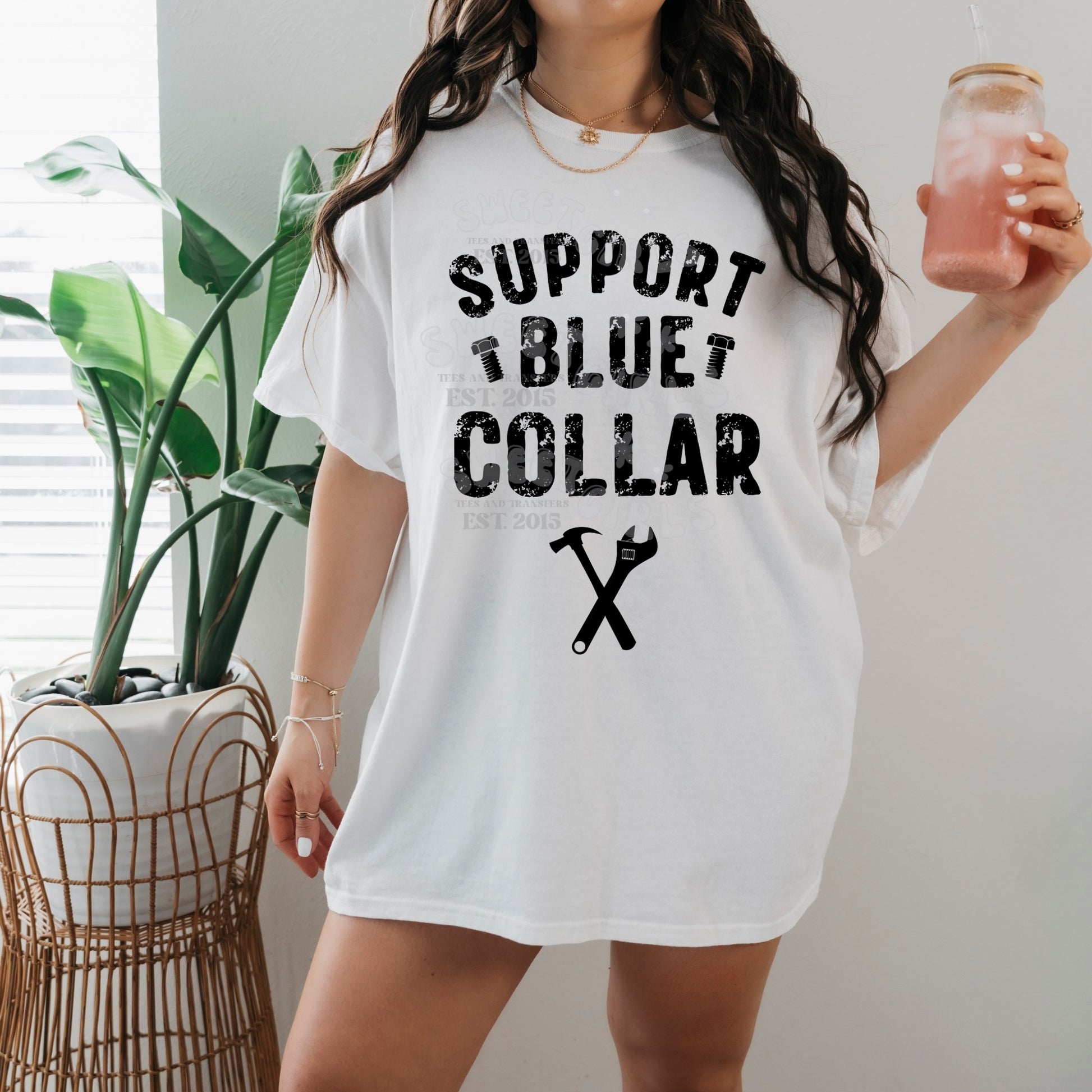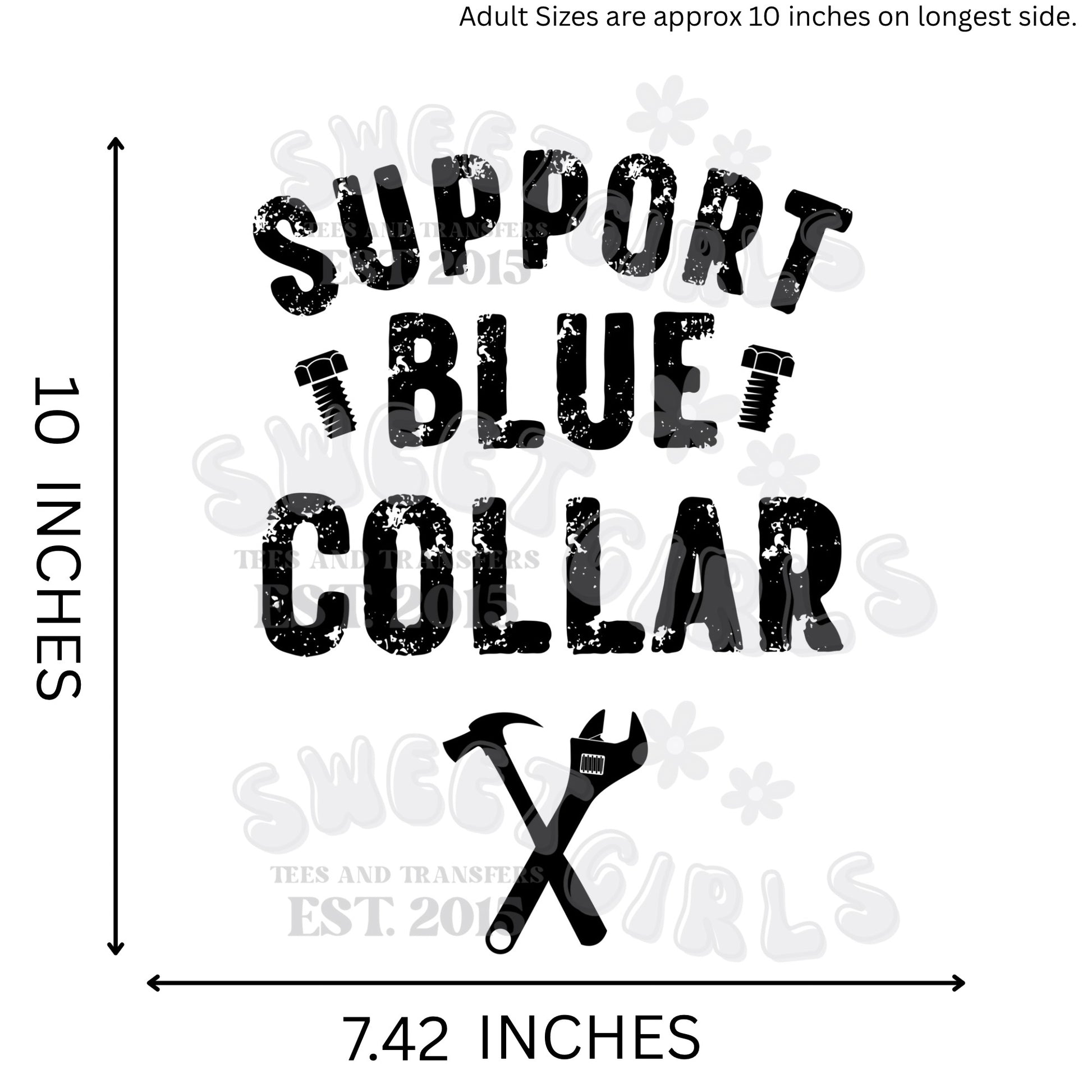 Support Blue Collar HEAT TRANSFER – Grunge Tools DTF Transfer Ready to Press Iron-On for Shirts, Workwear, Totes – Durable, Washable, Long-Lasting DIY Heat Press Decal for Hardworking Men and Women