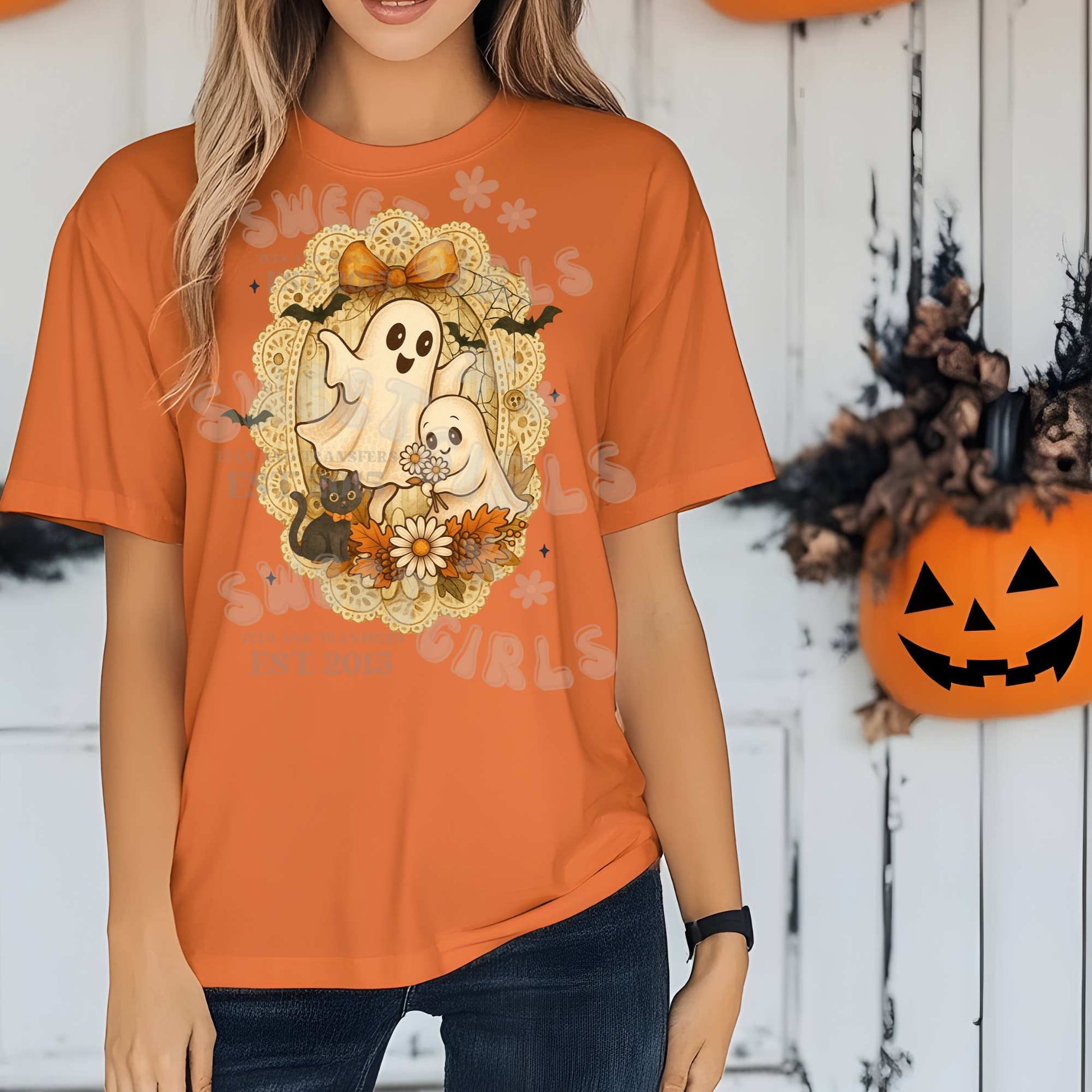 Vintage Fall Ghosts Cute Halloween Heat Transfer – Ready to Press DTF Design for Shirts, Totes & More