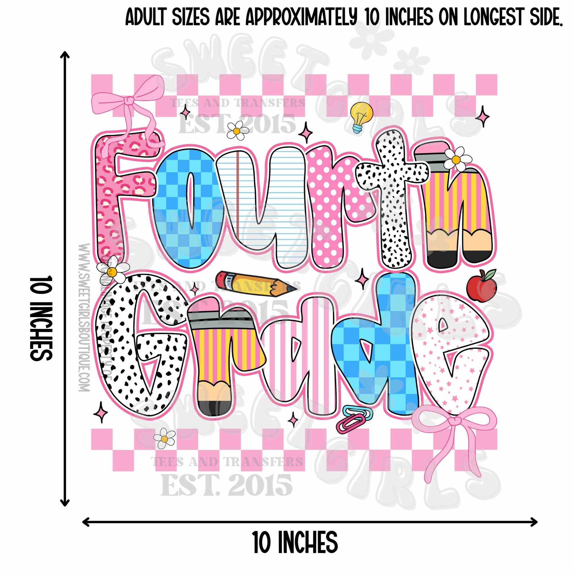 Whimsical Grade Level DTF Transfers – PreK to 4th Back to School Iron-On Designs for Kids & Adults – Ready to Press Shirt & Tote Heat Decals